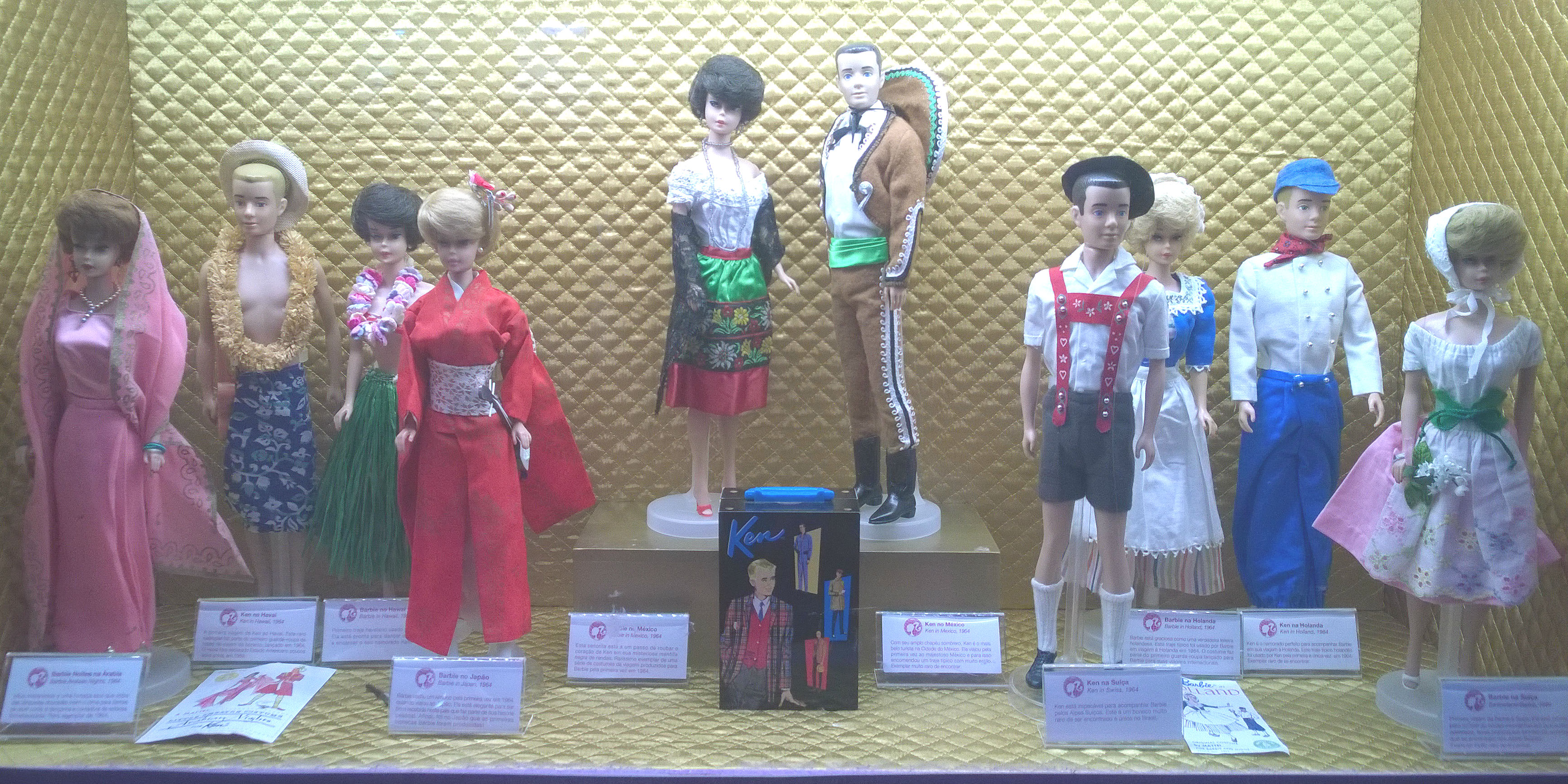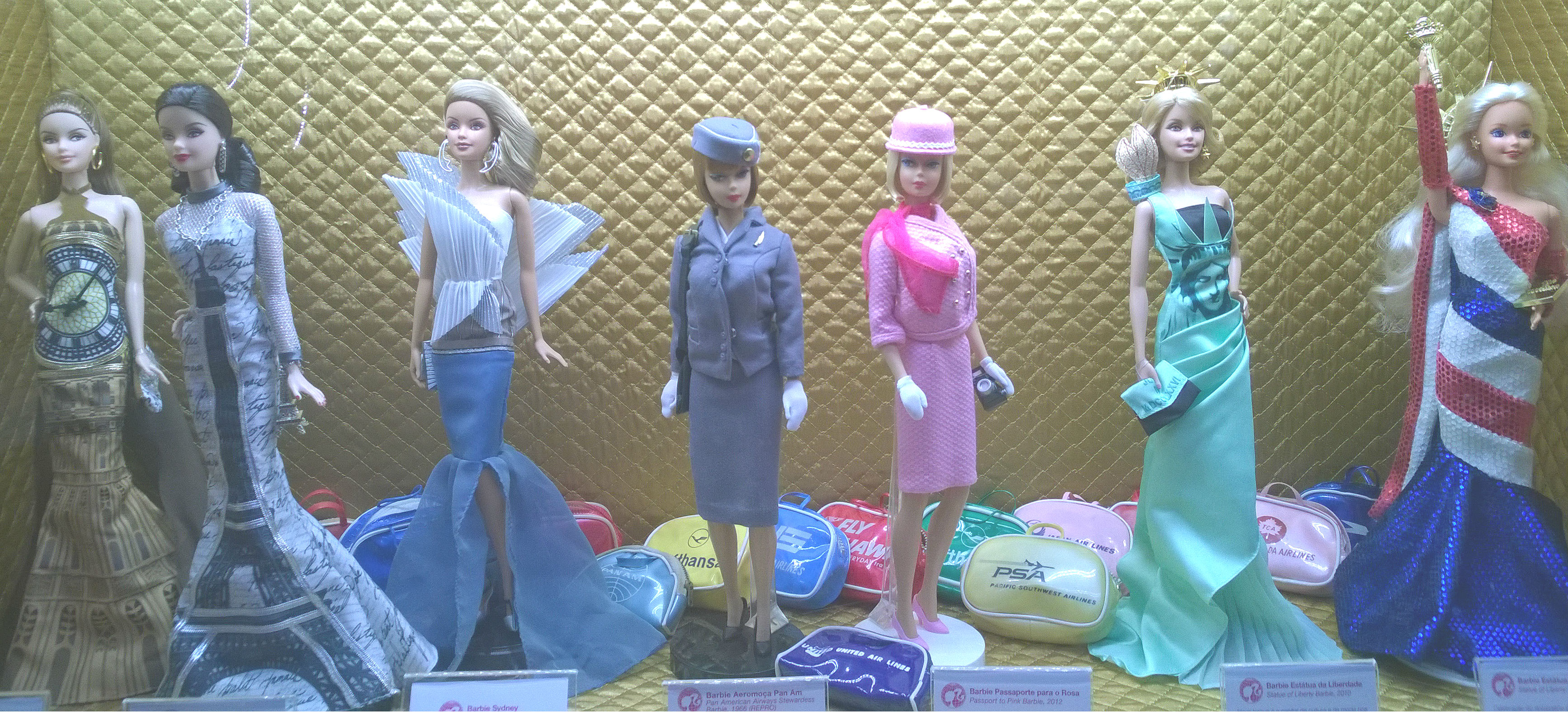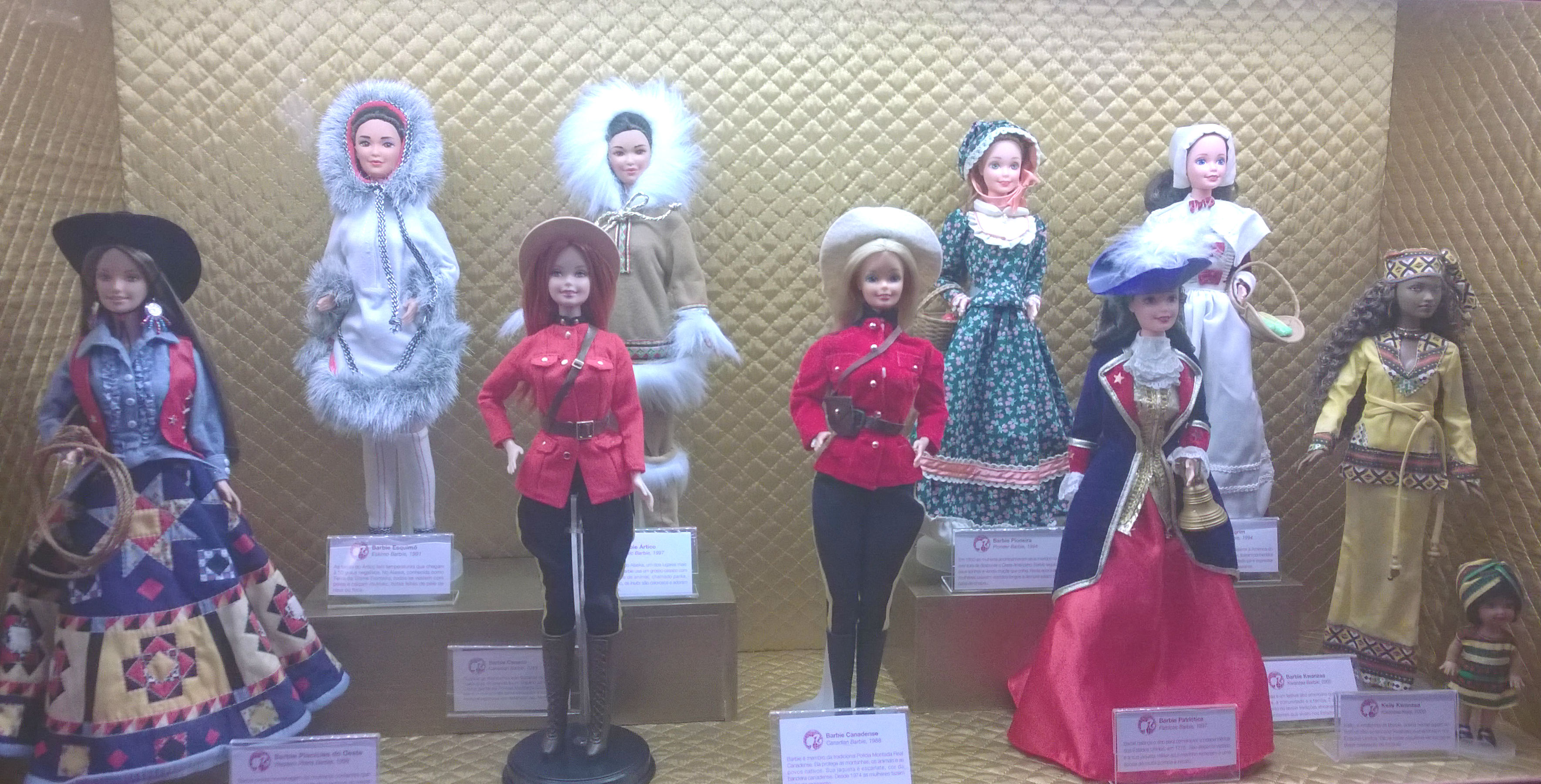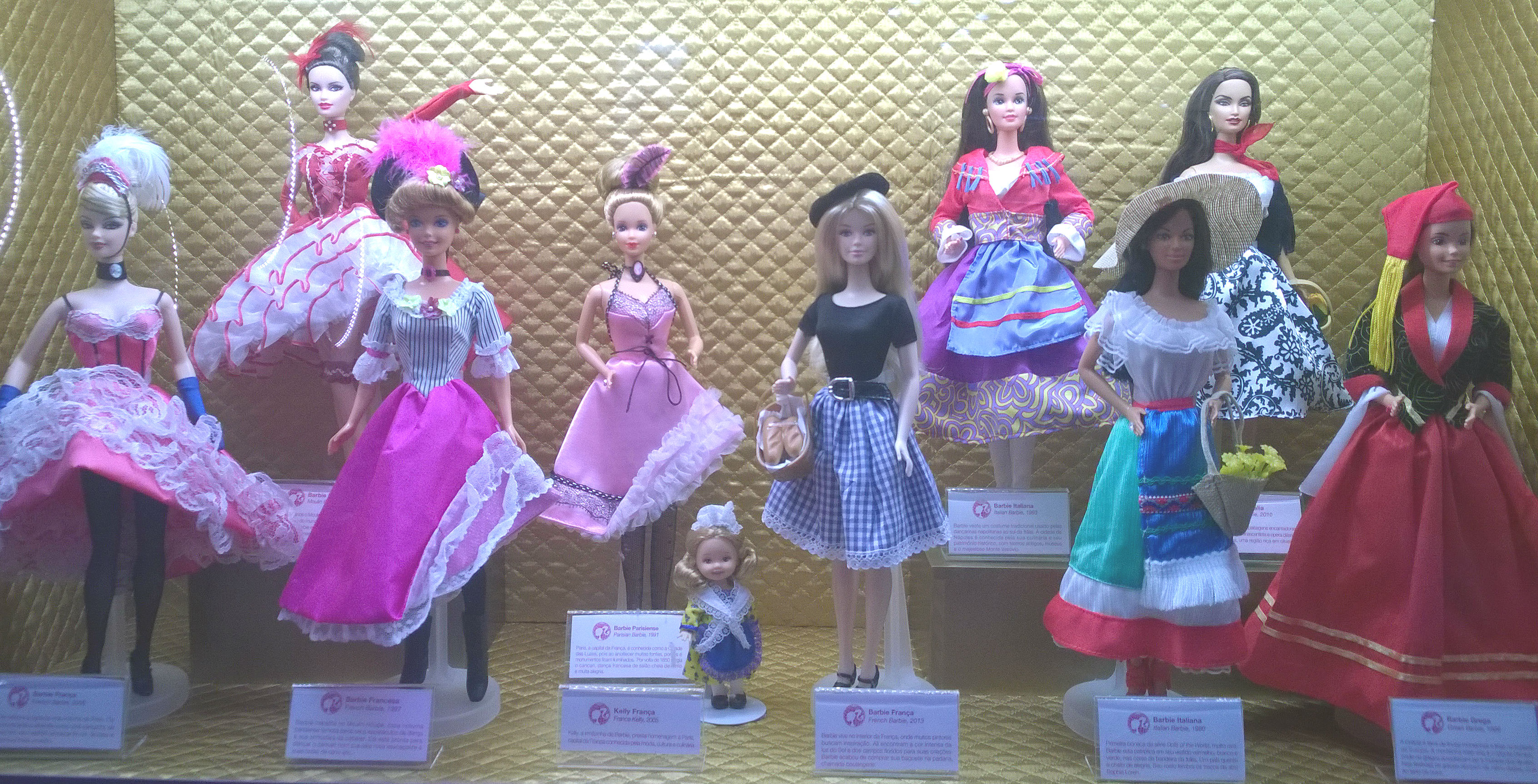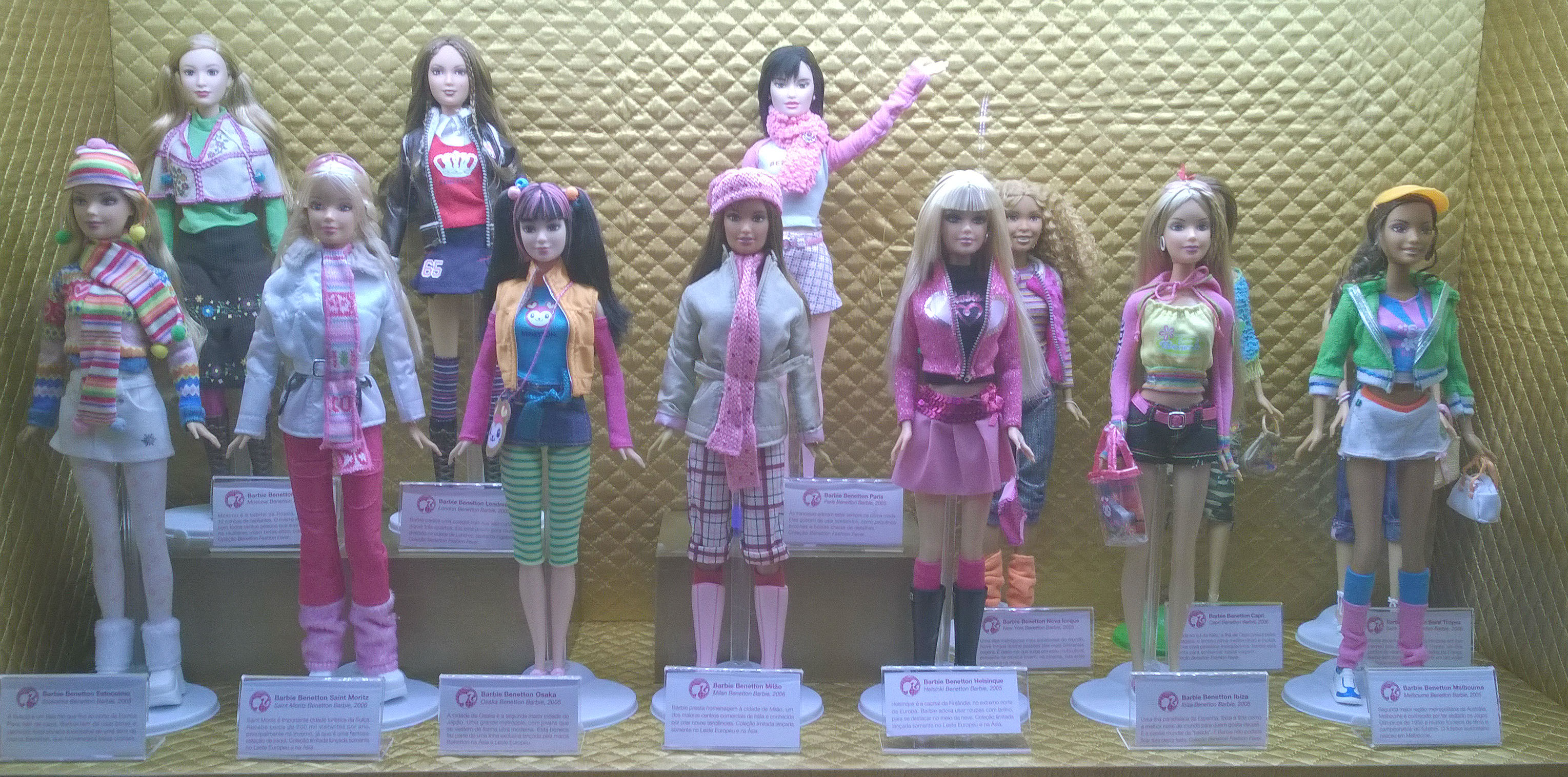 Como não poderia deixar essa passar, tirei uma foto de cada Barbie, e algumas mostrando as vitrines no geral, que eram mais ou menos 19, sendo que uma eu acidentalmente esqueci de fotografar 😦
