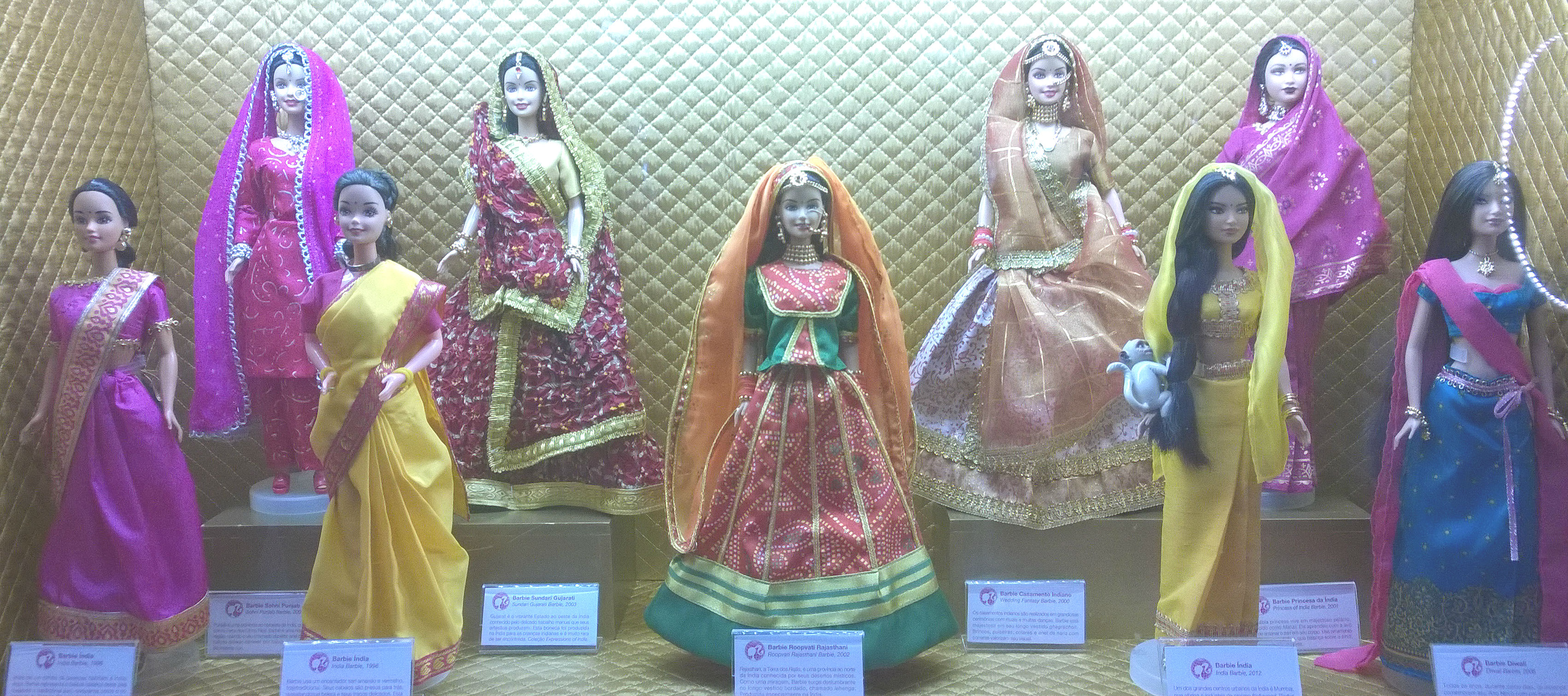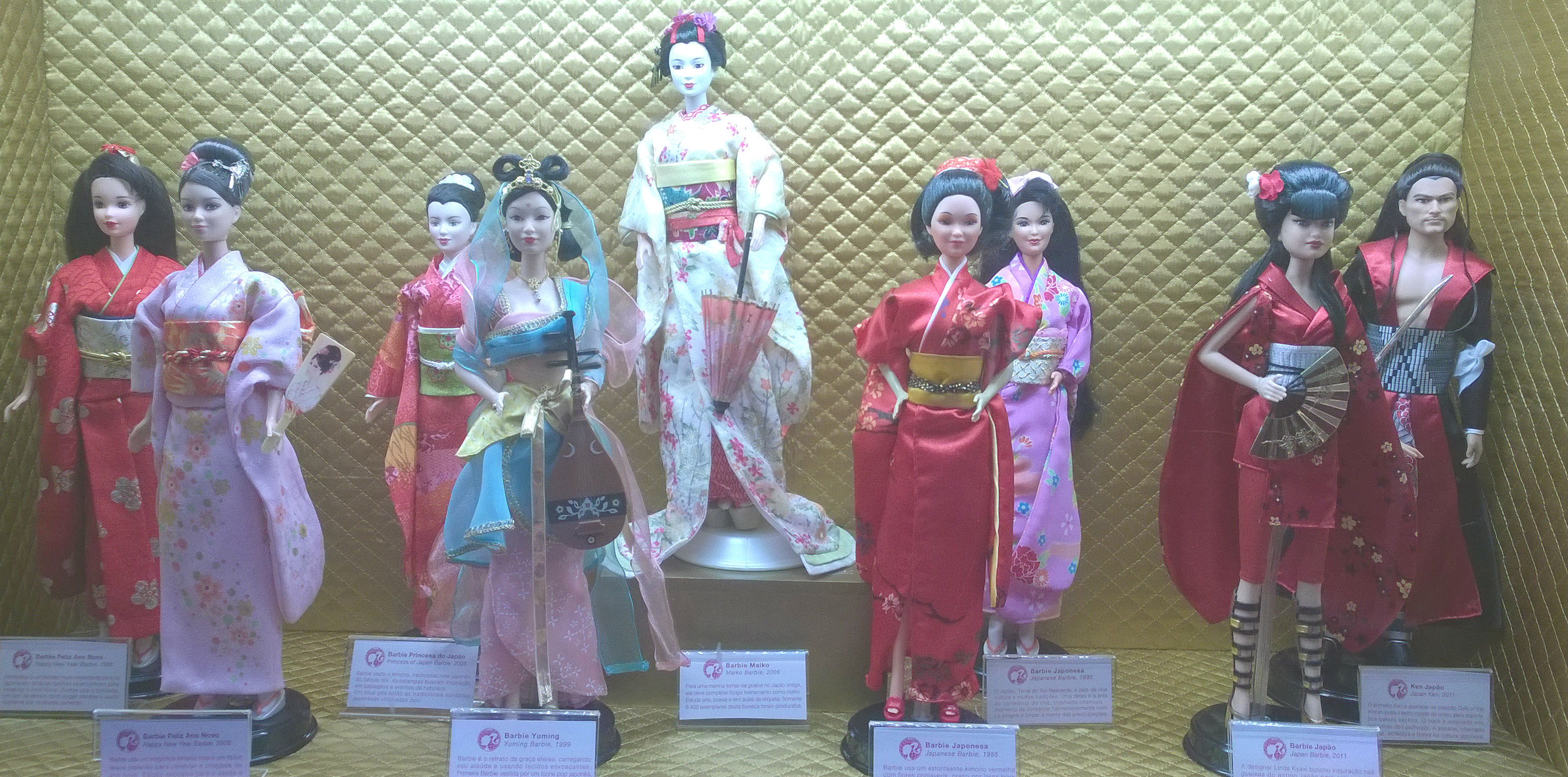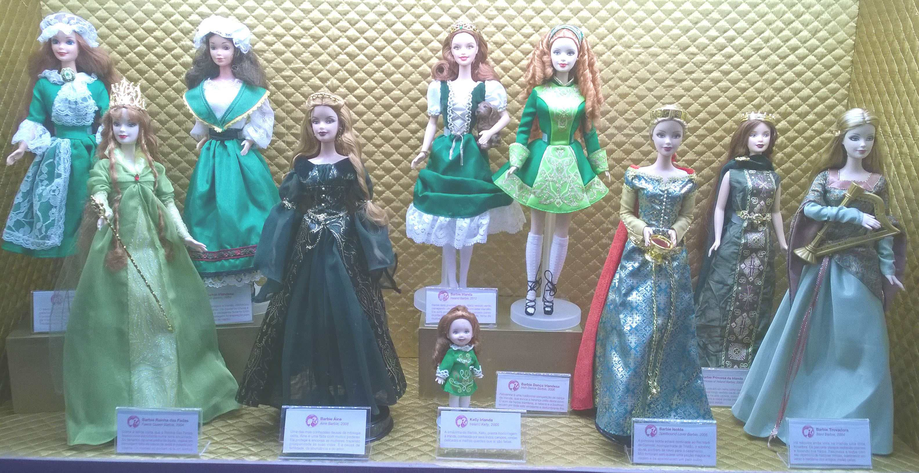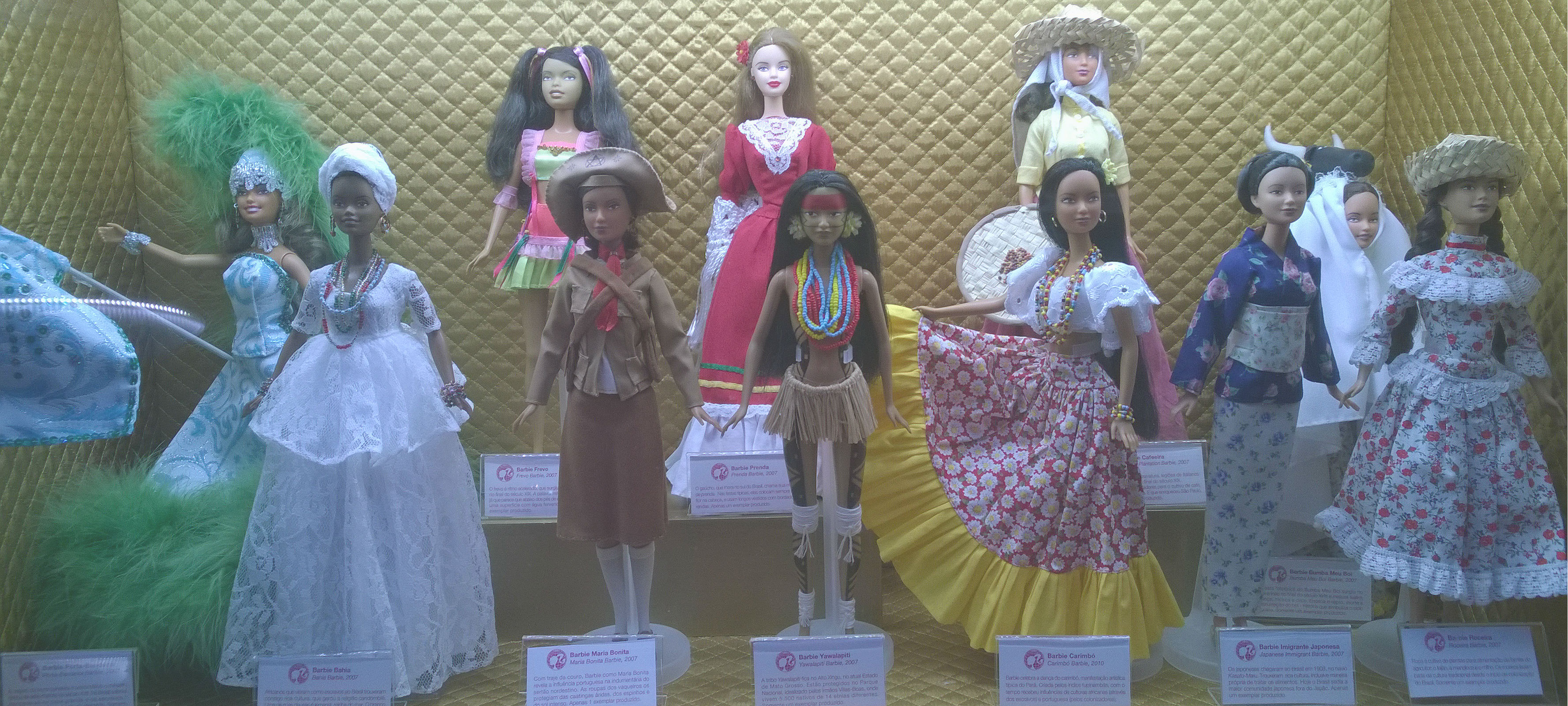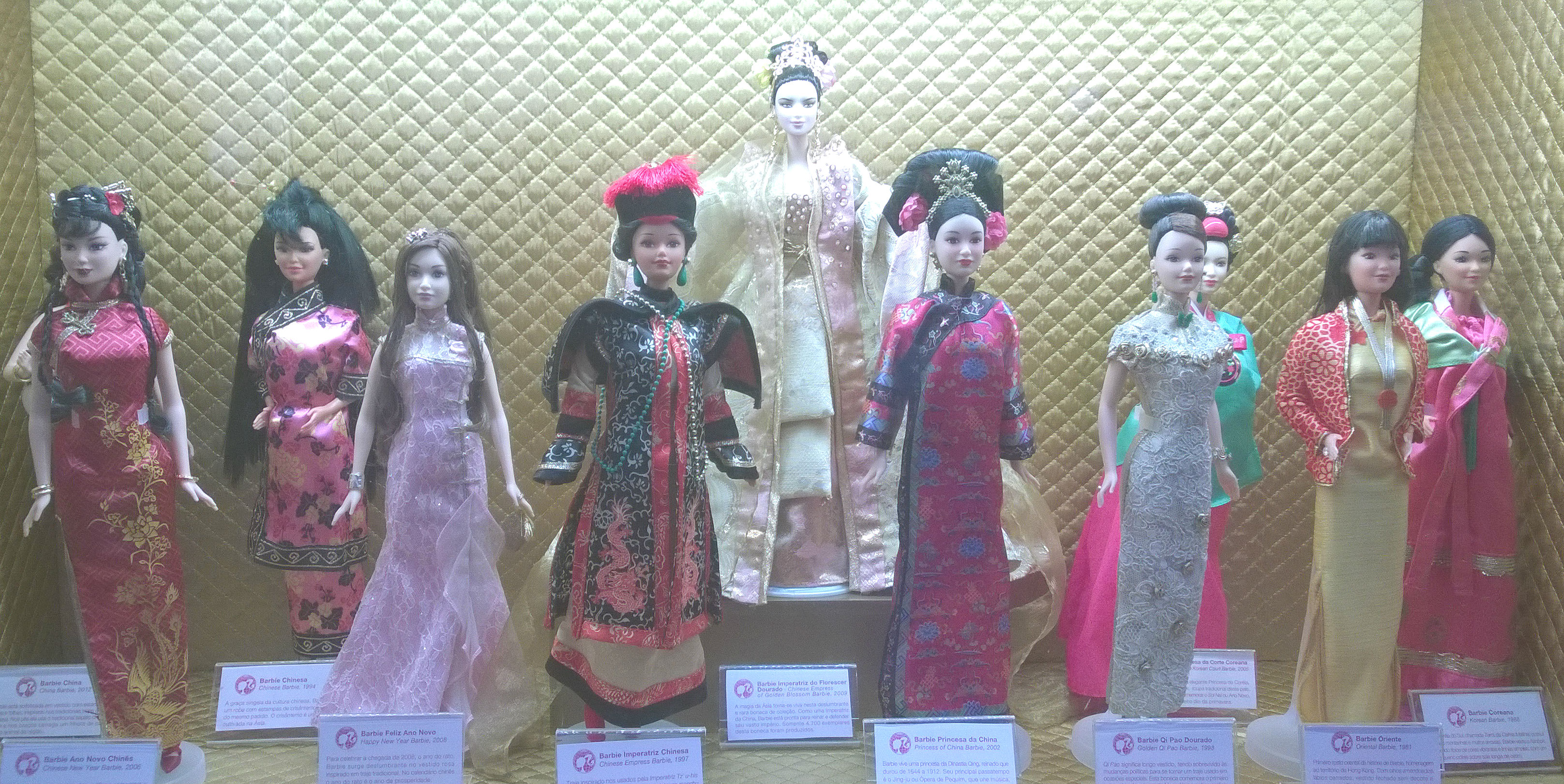Como não poderia deixar essa passar, tirei uma foto de cada Barbie, e algumas mostrando as vitrines no geral, que eram mais ou menos 19, sendo que uma eu acidentalmente esqueci de fotografar 😦