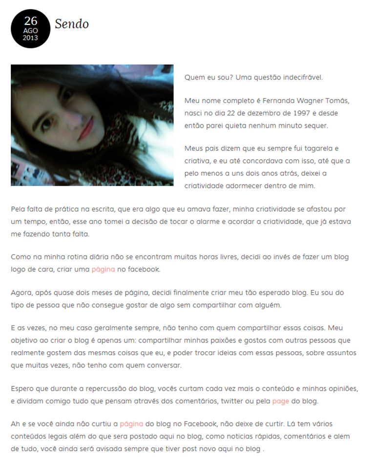 Olá! Eu sei que fiquei uns dias sumida, mas dessa vez vocês não podem me culpar de nada (quem sabe apenas um pouco pela minha incompetência), mas enfim, algumas de vocês devem saber que o “layout” do WordPress mudou totalmente de uns dias pra cá, e adivinhem só? A srta aqui não conseguiu aprender a adicionar fotos aos posts, e como todos os que eu tinha planejado fazer precisavam de fotos, já estava entrando em desespero.