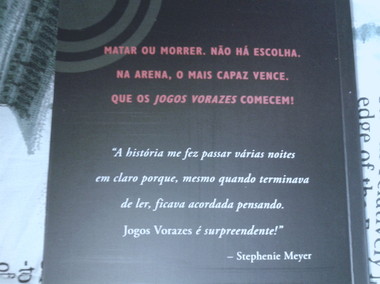 Muitas coisas acontecem no desenrolar da história, mas se tem uma coisa que posso afirmar com certeza para vocês é que cada acontecimento desse primeiro livro, te prende cada vez mais a leitura, você vai querer termina-lo todo de uma vez (pelo menos foi assim comigo)! E como tia Steph mesma disse: “Jogos Vorazes é surpreendente!”